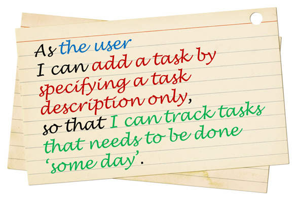 You canwrite each user story in a piece of paper (e.g. yellow sticky note, index card, or just pieces of paper about the size of a playing card). Alternatively you canuse an online tool (some examples given in [Textbook Specifying Requirements → UserStories → Usage → (panel) Tool Examples ]).