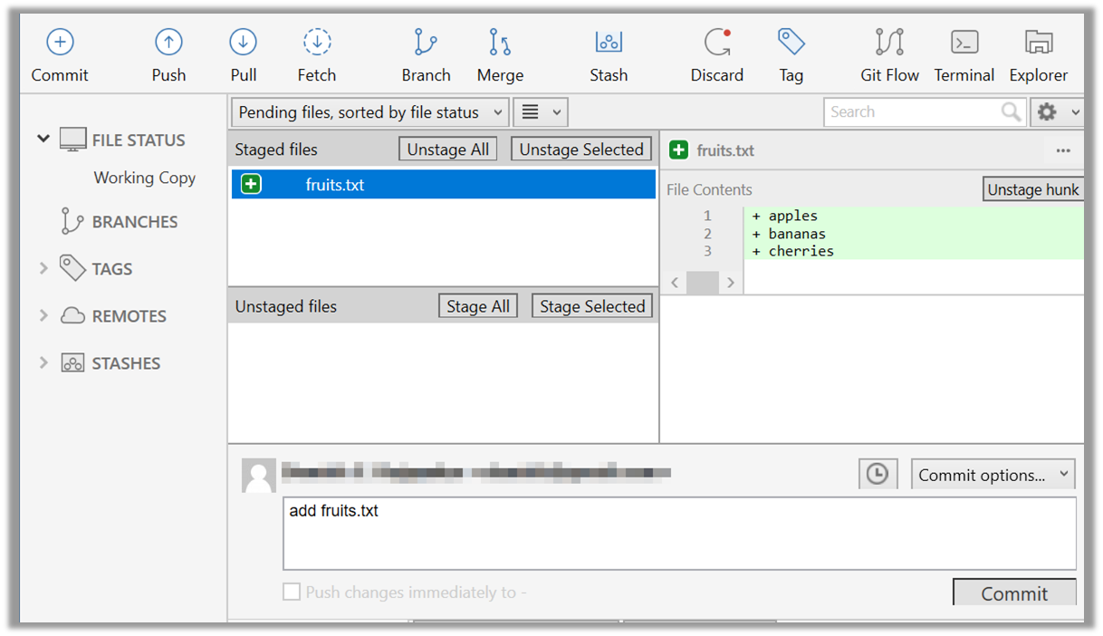 Follow this article from SourceTree creators. Note that the GUI shown in the article is slightly outdated but you should be able to map it to the current GUI.