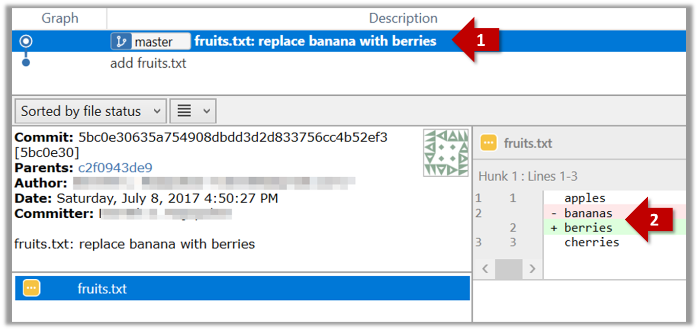 To see which files changed in a commit, click on the commit. To see what changed in a specific file in that commit, click on the file name.