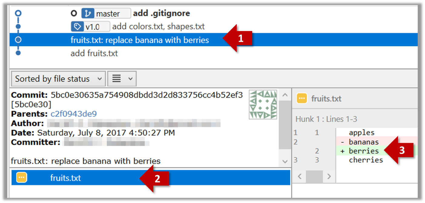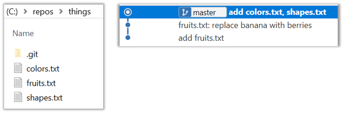 The specified version is now loaded to the working folder, as indicated by the HEAD label. HEAD is a reference to the currently checked out commit.