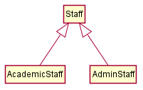 In the example above, AcademicStaff is a SalariedStaff. An AcademicStaff object can be used anywhere a SalariedStaff object is expected e.g. SalariedStaff ss = new AcademicStaff().