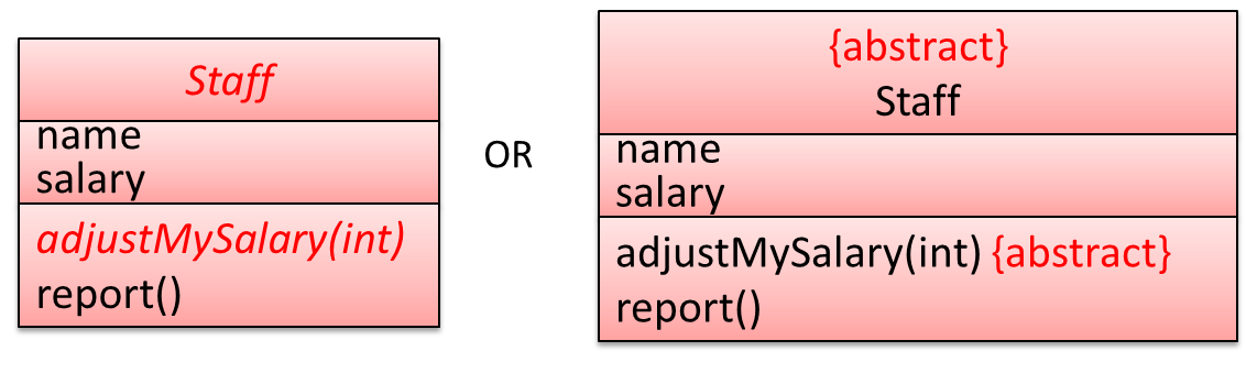 : before the class nameFurthermore, multiple object diagrams can correspond to a single class diagram.