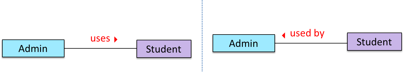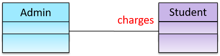 Admin class is associated with Student class because an Admin object uses a Student object.Admin class is associated with Student class because a Student object is used by an Admin object.