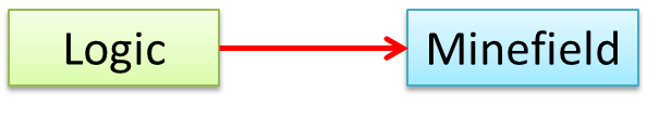 In this example, the navigability is unidirectional, and is from the Logic class to the Minefield class. That means if a Logic object L is associated with a Minefield object M, L has a reference to M but M doesn't have a reference to L.