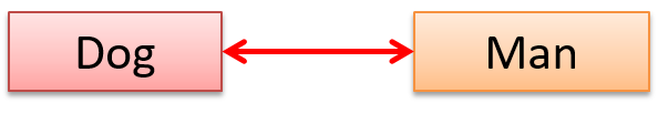 Here is an example of a bidirectional navigability; i.e., if a Dog object d is associated with a Man object m, d has a reference to m and m has a reference to d.