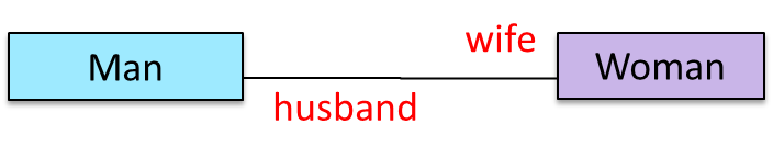 This association represents a marriage between a Man object and a Woman object. The respective roles played by objects of these two classes are husband and wife.