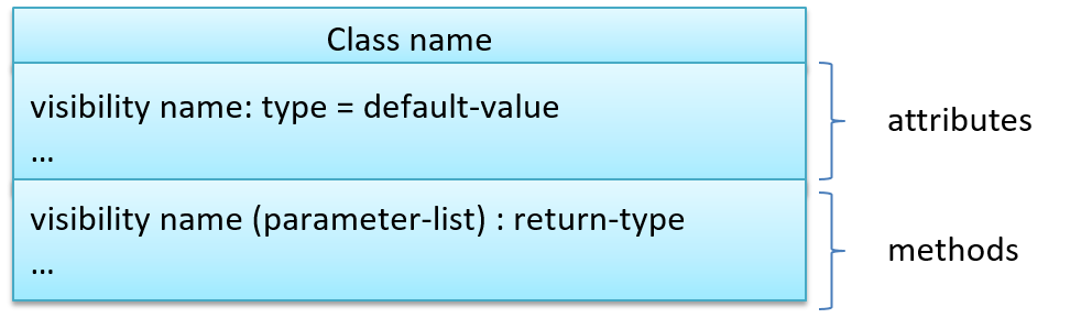 The visibility of attributes and operations is used to indicate the level of access allowed for each attribute or operation. The types of visibility and their exact meanings depend on the programming language used. Here are some common visibilities and how they are indicated in a class diagram: