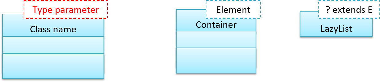 Generic classes can be shown as given below. The notation format is shown on the left, followed by two examples.