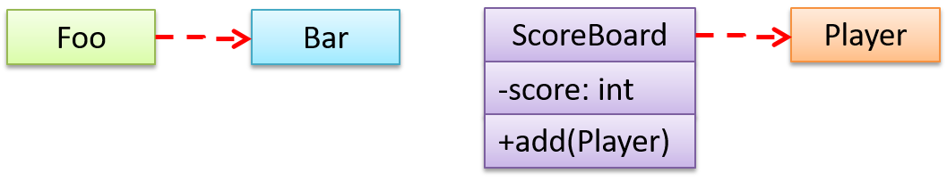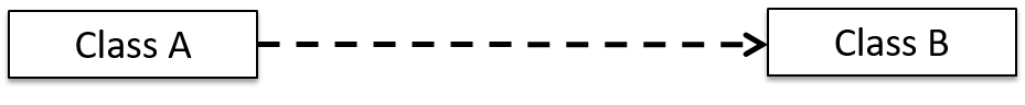 UML uses a dashed arrow to show dependencies.