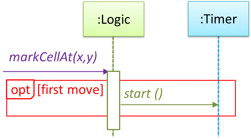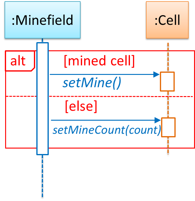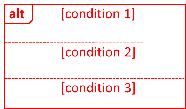 UML uses alt frames to indicate alternative paths.