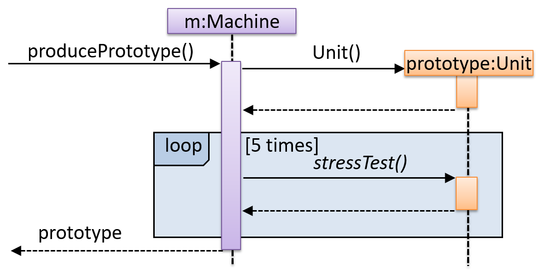 Here is the sequence diagram to model the interactions for the method call producePrototype() on a Machine object.
