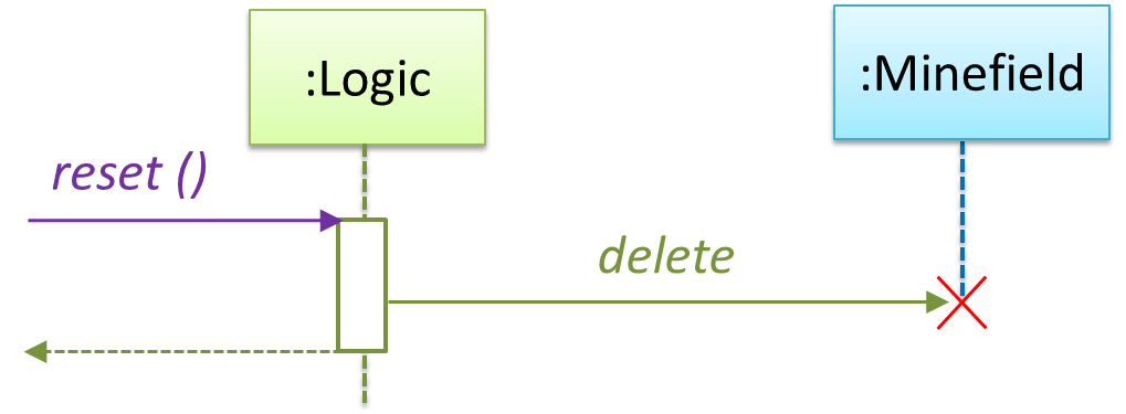Note how the below diagram shows the deletion of the Minefield object.