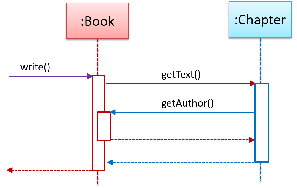 In this variation, the Book#write() method is calling the Chapter#getText() method which in turn does a call back by calling the getAuthor() method of the calling object.