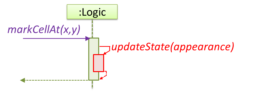 The markCellAt(...) method of a Logic object is calling its own updateState(...) method.